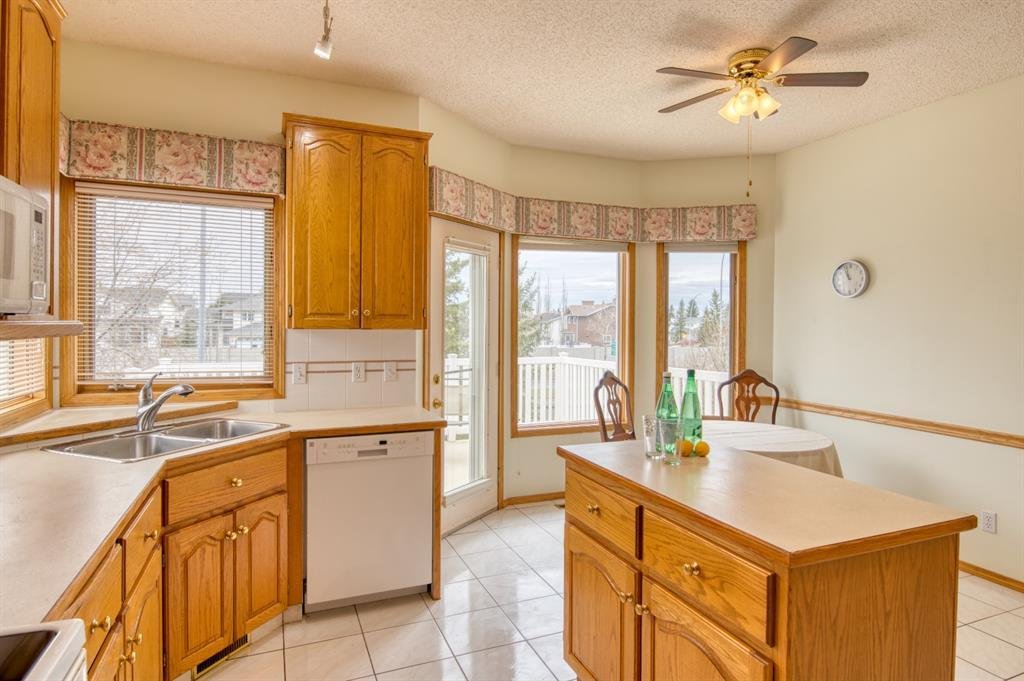 Nestled on a quiet cul-de-sac is this wonderfully maintained Lupi built WALKOUT BUNGALOW with a total of 3 bedrooms and 3 full baths and a main floor office too. With gleaming hardwood and tile floors, this former showhome boasts 9 ft ceilings, an open concept living/dining room and a 3-sided fireplace. You'll love the large kitchen with solid core oak cabinets, a separate nook area, kitchen island and walk in pantry. Enjoy your morning coffee or evening BBQ on the deck off the nook. The primary bedroom has a 4 piece ensuite which includes a separate shower. The walk in closet is a good size with a passage door closing it off from the bedroom. The main floor adjacent den has a built in desk and shelving-perfect for that home office. Enjoy the wonderful daylight streaming into the 4 piece main bath from the upper skylight. The main floor laundry is off the back entrance leading to the freshly painted, drywalled and insulated garage. Head down to the lower WALKOUT which is fully finished with 2 bedrooms, each with a walk in closets, a massive games/recreation room and a 4 piece bath. Still great storage in the utility room as well. Double attached garage and a convenient 8' overhead door, replaced in 2018, is perfect for your SUV. Concrete patio off the lower doors leading to a large flat backyard with a storage shed at the back. U/G sprinklers, low maintainence stucco & brick as well as the SHINGLES replaced in 2013. Easy access to shopping, LRT, schools, and major traffic arteries, and with your LAKE PASS, enjoy family time at your own private community lake. EXCELLENT VALUE!! (25581771)