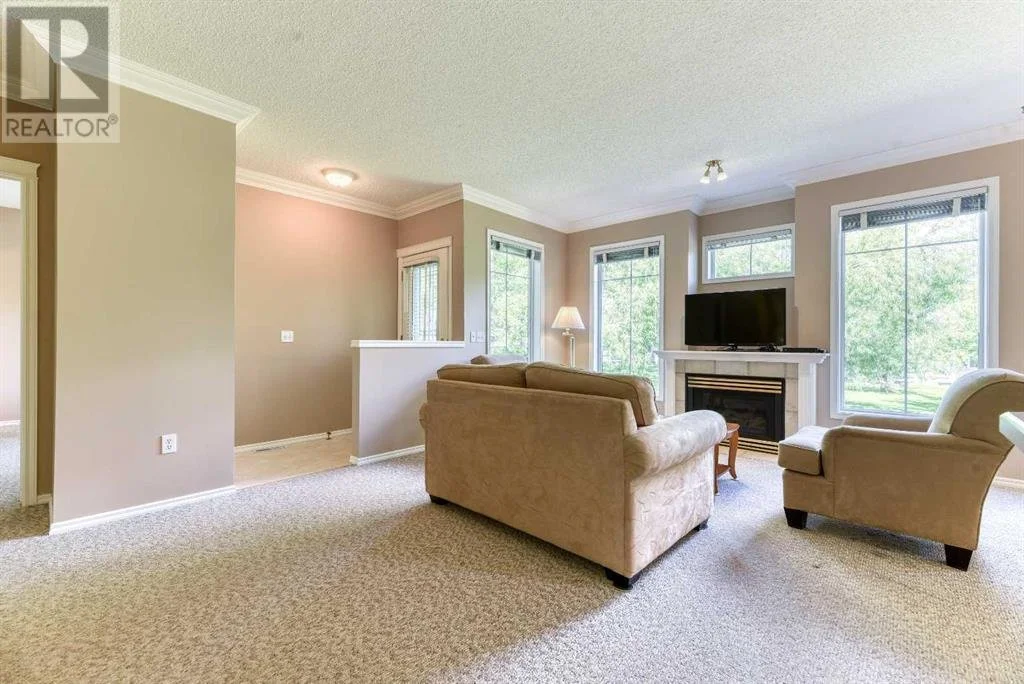 Ground level, 2 bedroom, 2 bath bungalow townhouse situated in a parklike setting fronting onto green space. Added security and convenience with a large single attached, insulated and drywalled garage. The entire interior was just freshly painted including baseboards. The 9' ceilings create an open and spacious feel as you step into the property where you will notice the cozy gas fireplace in the living room for added ambience coupled with a dining area adjacent. The kitchen has lots of great counter space, tile backsplash and a raised eating bar for additional seating. Numerous cabinets will hold all your dishes and a pantry for the dry goods you'll need. Crown mouldings add the estate touch to this wonderful home and the neutral carpets are in excellent condition. The primary bedroom has a walkin closet and a 4 pce ensuite. The second bedroom is also a generous size with a 4 pce bath down the hall. Facing the green space, enjoy your morning summer coffee on your covered patio. The laundry area is a separate room with additional shelving for storage. The utility room is big enough for a freezer or extra fridge. This bungalow has a rare 4ft crawl space for more storage, should you need that. The seller is leaving all the shelving, cabinets and workbench in the garage too. Excellent value for a lovingly cared for home. (29184757)